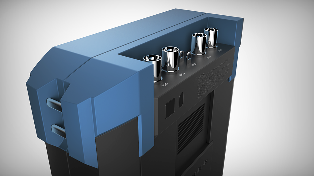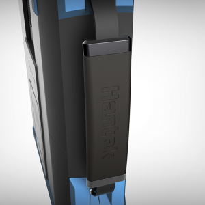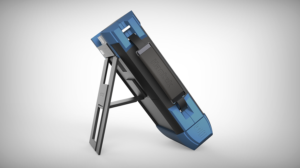 本款產(chǎn)品為便攜手持設(shè)備,我們設(shè)計(jì)首先產(chǎn)品本身使用環(huán)境可能比較惡劣,機(jī)器需要正常運(yùn)轉(zhuǎn)就必須具備可靠的防護(hù)。所需要的防護(hù)等級要達(dá)到IP65,因此在設(shè)計(jì)時(shí)要充分考慮產(chǎn)品的防護(hù)特性,這在外觀也有所體現(xiàn)。我們將產(chǎn)品的四周用抗沖擊的橡膠進(jìn)行包裹,側(cè)面接口的位置都配備了橡膠堵頭。整體厚重結(jié)實(shí)的形象也比較符合這類產(chǎn)品的既定語言和感覺。其次在人機(jī)關(guān)系方面需要重點(diǎn)考慮整機(jī)的尺寸及重量還有按鍵的分布及形式,因?yàn)槭鞘殖衷O(shè)備,在人機(jī)設(shè)計(jì)時(shí)要充分考慮人手甚至單手操作的便利性。機(jī)器根據(jù)屏幕大小和不同的操作方式分為兩個(gè)型號,同系列產(chǎn)品在語言和設(shè)計(jì)上的家族感也得到充分的體現(xiàn)。