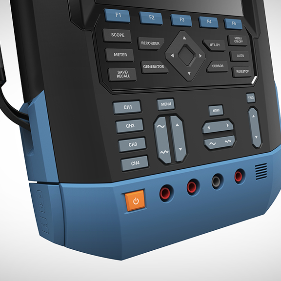手持示波器是一種手持式的電子測量儀器,用于顯示被測量的瞬時(shí)值軌跡變化情況,具有攜帶方便、操作簡單等特點(diǎn)。它能把肉眼看不見的電信號變換成看得見的圖像,便于人們研究各種電現(xiàn)象的變化過程。它利用狹窄的、由高速電子組成的電子束,打在涂有熒光物質(zhì)的屏面上,就可產(chǎn)生細(xì)小的光點(diǎn)。在被測信號的作用下,電子束就好像一支筆的筆尖,可以在屏面上描繪出被測信號的瞬時(shí)值的變化曲線。利用示波器能觀察各種不同信號幅度隨時(shí)間變化的波形曲線,還可以用它測試各種不同的電量,如電壓、電流、頻率、相位差、調(diào)幅度等等。