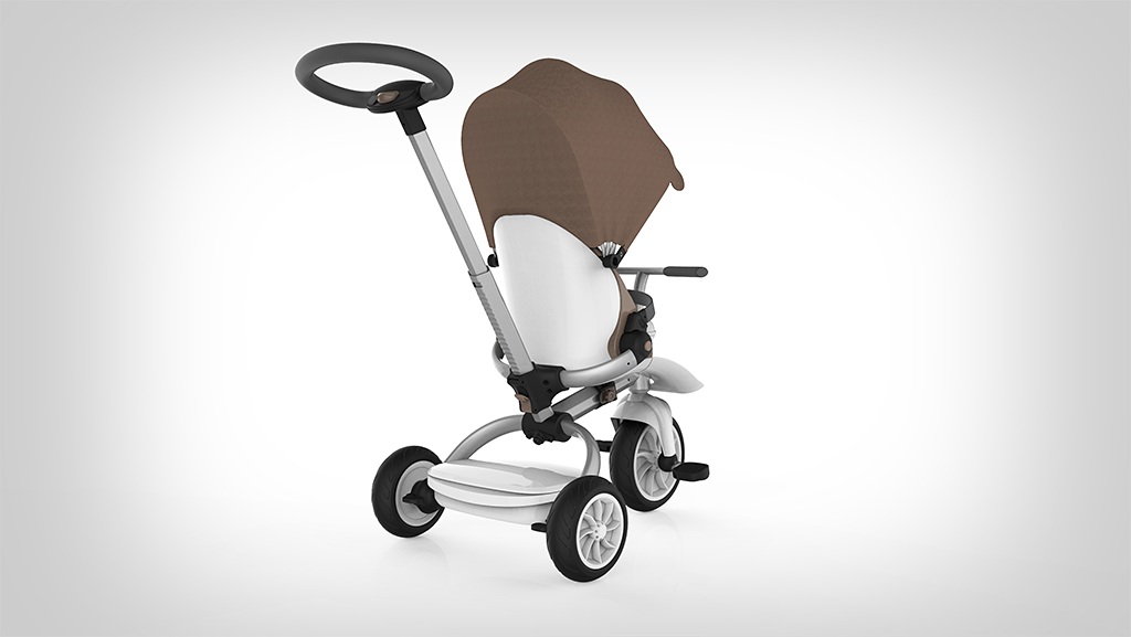 這款童車的設計從出生到學齡前期兒童的不同階段的生理及心理需求出發(fā),一站式成長三階段,適合不同年齡段的兒童使用,盡量延長兒童產品的使用壽命。后殼整體成型,充分體現安全感。前置擱腳板可以有效的保護寶寶的腳部;座椅內部材料觸感柔軟細膩;車架采用高密度航空鋁材,表面經陽極氧化和抗劃傷處理,堅固、輕便、耐用。遮陽棚材料透氣防曬,不易褶皺,可實現多檔調節(jié),而具有防水功能。