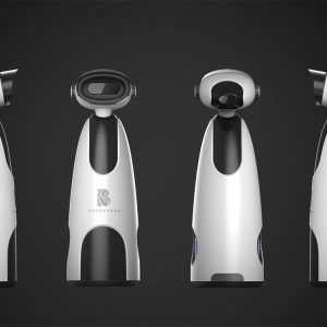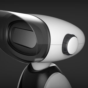 考慮到VR望遠鏡的商業(yè)用途需要投放在公共場所設(shè)計師的初衷是希望設(shè)計更年輕化、科技感一些,產(chǎn)品的造型最終選擇了視覺上更加圓潤的設(shè)計,方案通過仿生設(shè)計語言,打造未來機器人的形象,使它們更具親和力、更討人喜愛。類三角形的結(jié)構(gòu)具有較強的穩(wěn)定性,使用者可以通過機器人更清晰更科幻更真實的擁抱大自然。